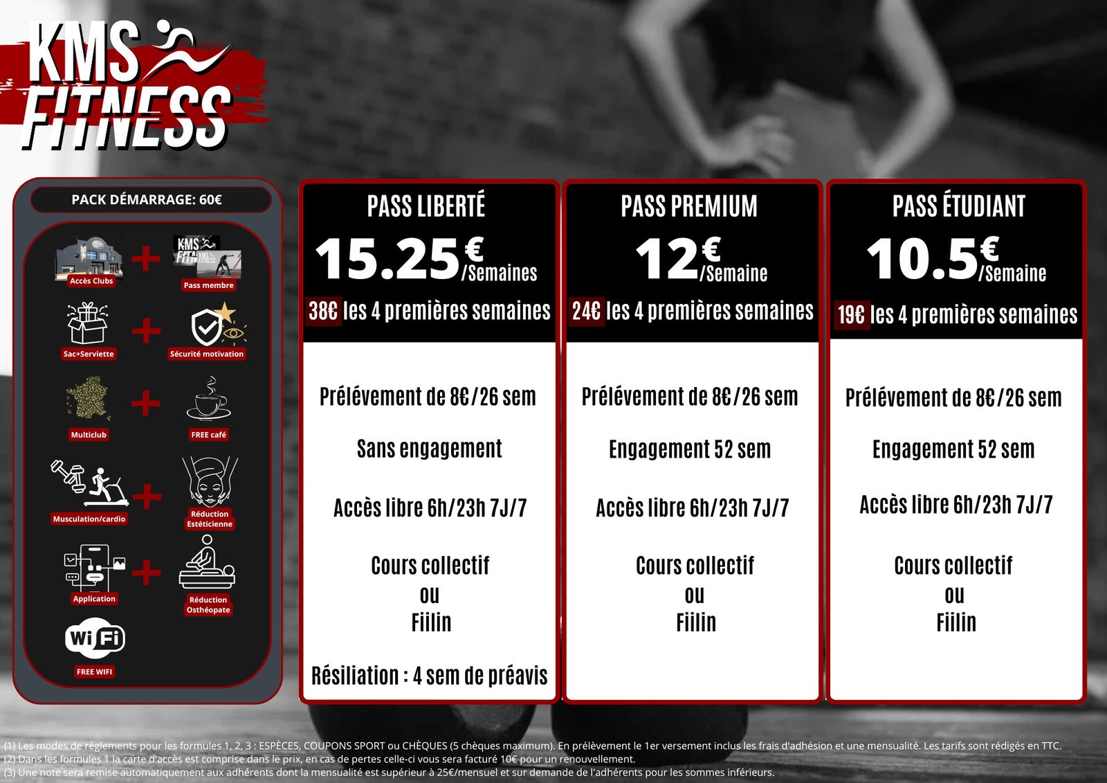 *Tous nos abonnement sous soumis à des frais d’inscription, à voir directement dans les espaces KMS lors de l’inscription